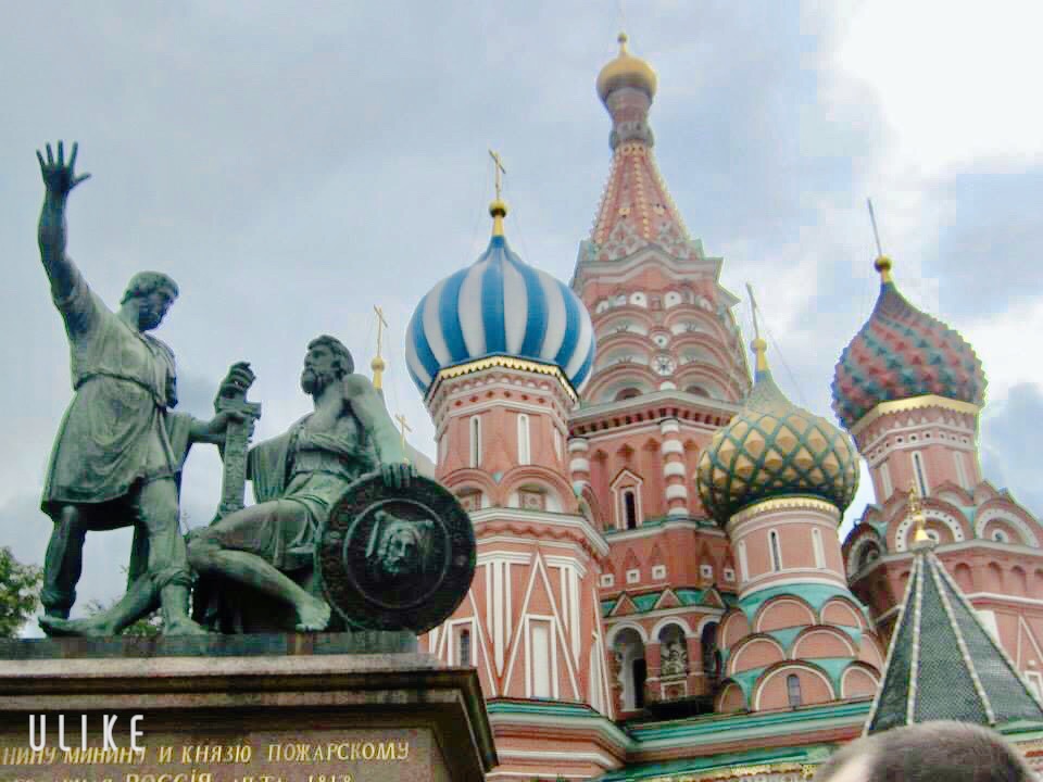 思い出曇り空と聖ワシリイ大聖堂のカラフルなコントラストが出たのと、良い構図でフレームに収めることができました!